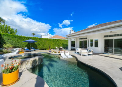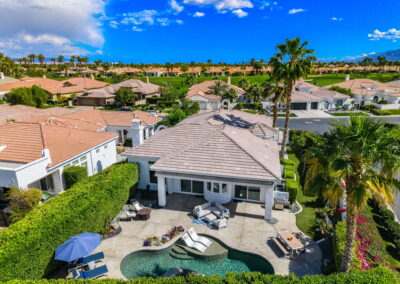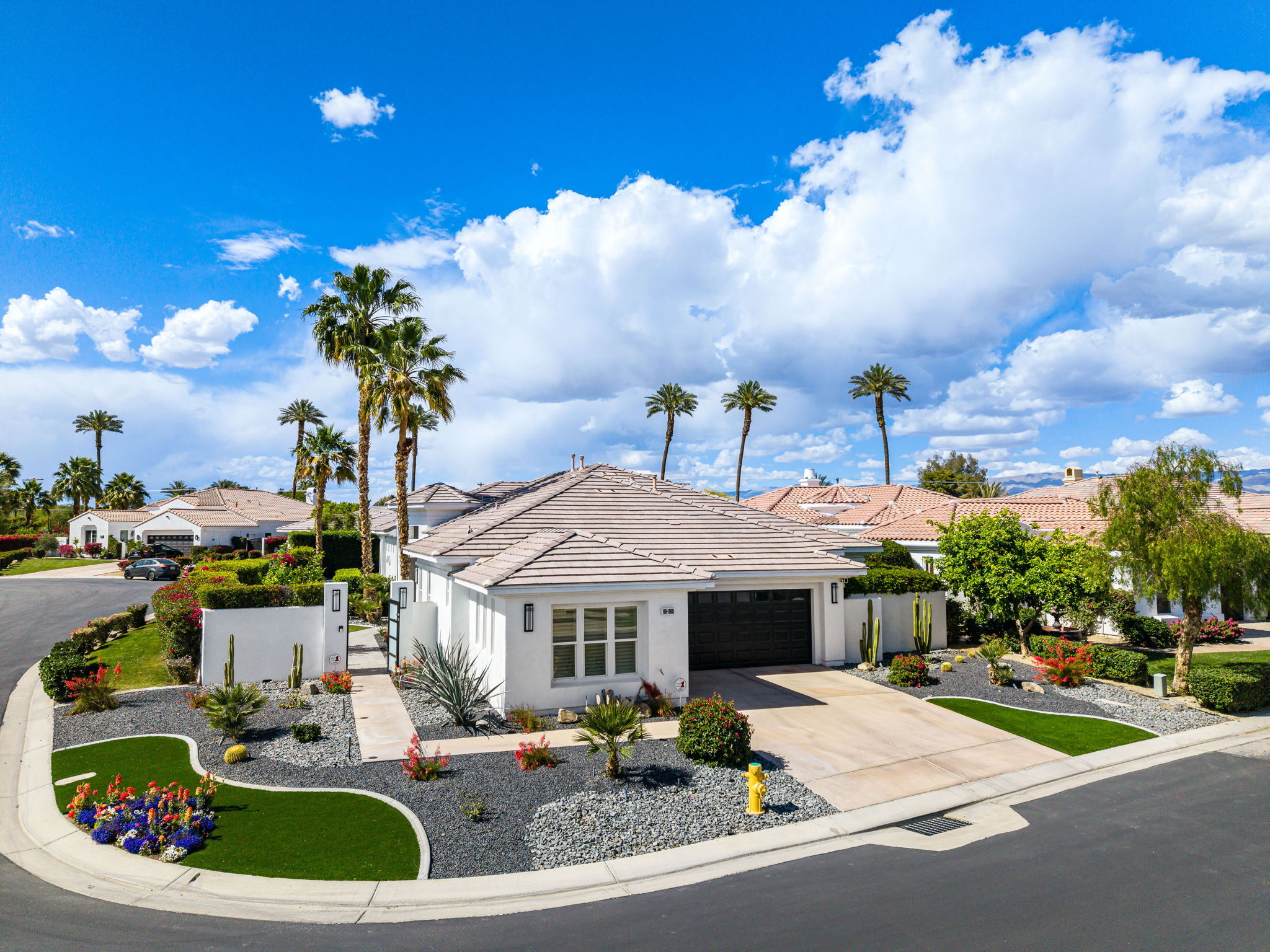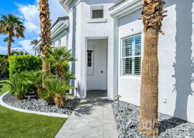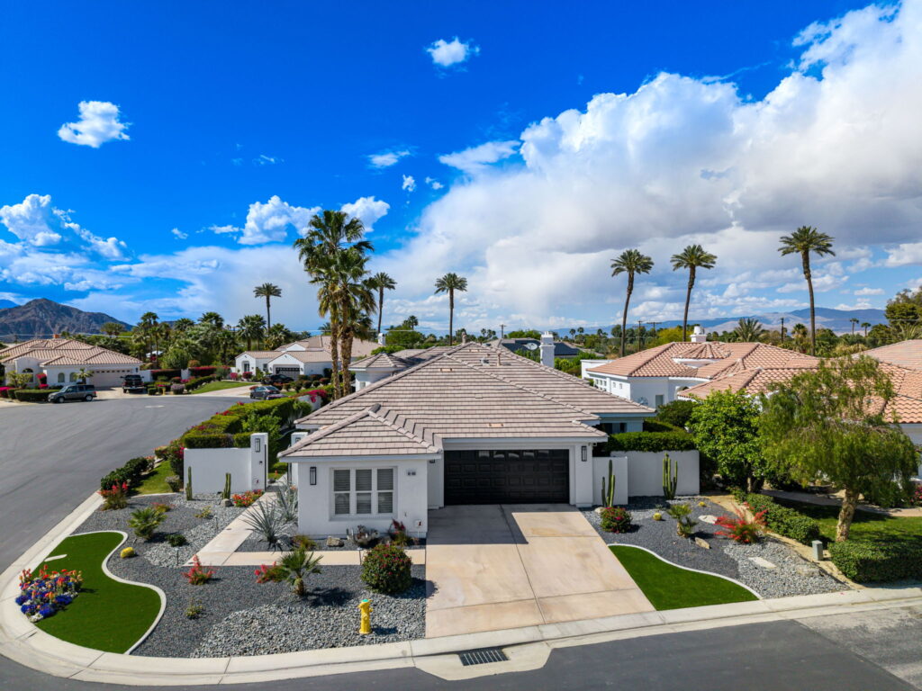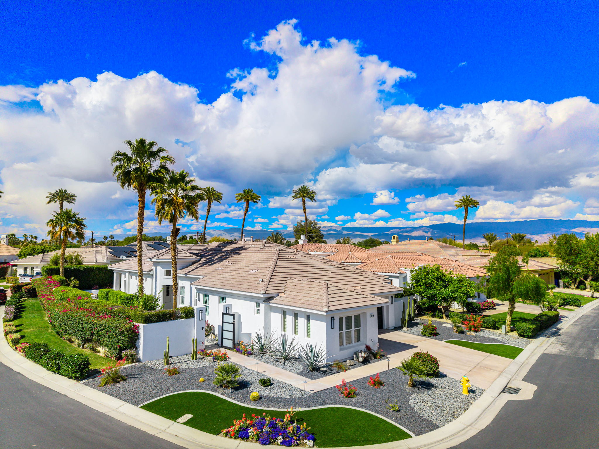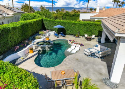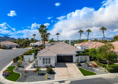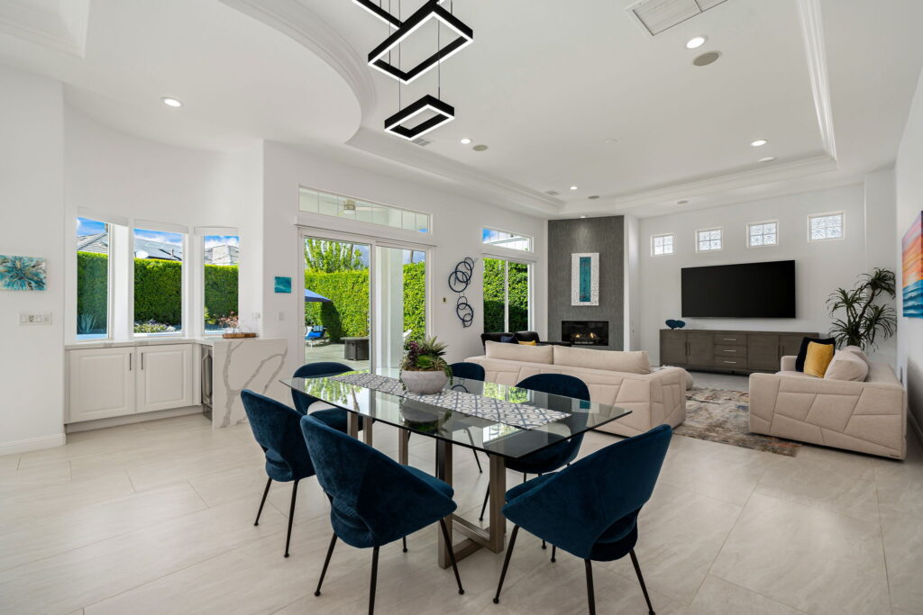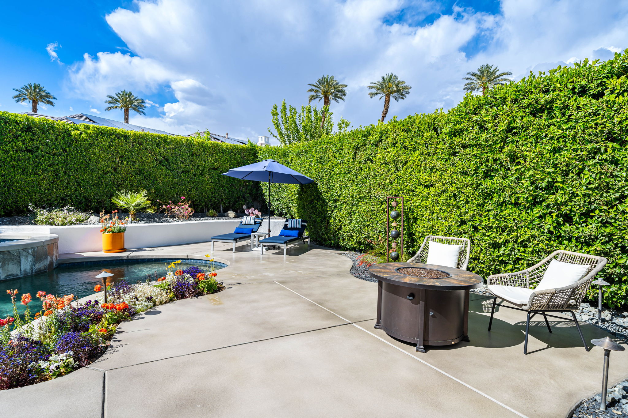 PRICE REDUCED. Private backyard perfect for our 4 legged friends, this house that delivers on all counts! Welcome to 80360 Via Valerosa, an exceptional desert retreat located in the prestigious Mountain View Country Club in La Quinta. This beautifully fully remodeled home combines timeless elegance with modern sophistication and offers the ultimate in indoor-outdoor desert living. Situated on an oversized 12,197 sq ft lot, this 3-bedroom, 4-bathroom residence features the highly sought-after expanded Camina floor plan of 2,634 sq ft of luxurious living space. Every corner of this home has been meticulously updated with premium finishes and designer touches that make it truly move-in ready. Step through the private gated courtyard into a bright and airy interior that blends contemporary design with comfort. The open-concept great room features soaring ceilings, a modern tile fireplace, and panoramic sliding glass doors that frame stunning views and invite natural light. The remodeled kitchen is a chef’s dream, complete with quartz countertops, custom cabinetry, stainless steel appliances, and a spacious island ideal for entertaining. Each of the three bedrooms is en suite, offering privacy and elegance, with remodeled bathrooms, walk-in showers, and custom tile work. The primary suite is a tranquil sanctuary with direct private patio access, dual vanities, a soaking tub, and a generous walk-in closet. Step outside into your own resort-style backyard oasis featuring a custom pebble-tec pool and spa, multiple covered seating areas and a cozy fire pit, all surrounded by beautifully landscaped grounds. Whether you’re hosting guests or enjoying a quiet evening under the stars, this outdoor space delivers peace, privacy, and beauty. Located within the gates of Mountain View Country Club, residents enjoy access to a wealth of amenities including an 18-hole Arnold Palmer Signature golf course, a state-of-the-art fitness center, tennis and pickleball courts, a luxurious clubhouse, and an active social calendar. HOA dues include 24-hour guarded security. Additional features include a 3-car garage, energy-efficient systems, and optional turnkey furnishings. Don’t miss this rare opportunity to own a fully renovated, move-in ready luxury home in one of La Quinta’s most desirable communities. Contact me today to schedule your private tour, this is the desert lifestyle you’ve been dreaming of!