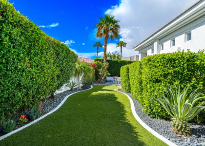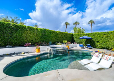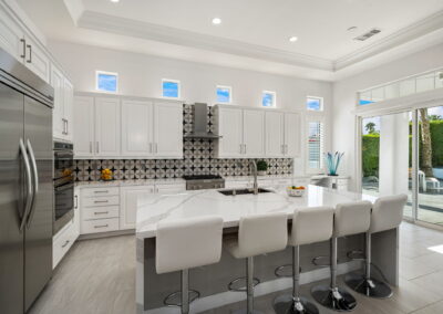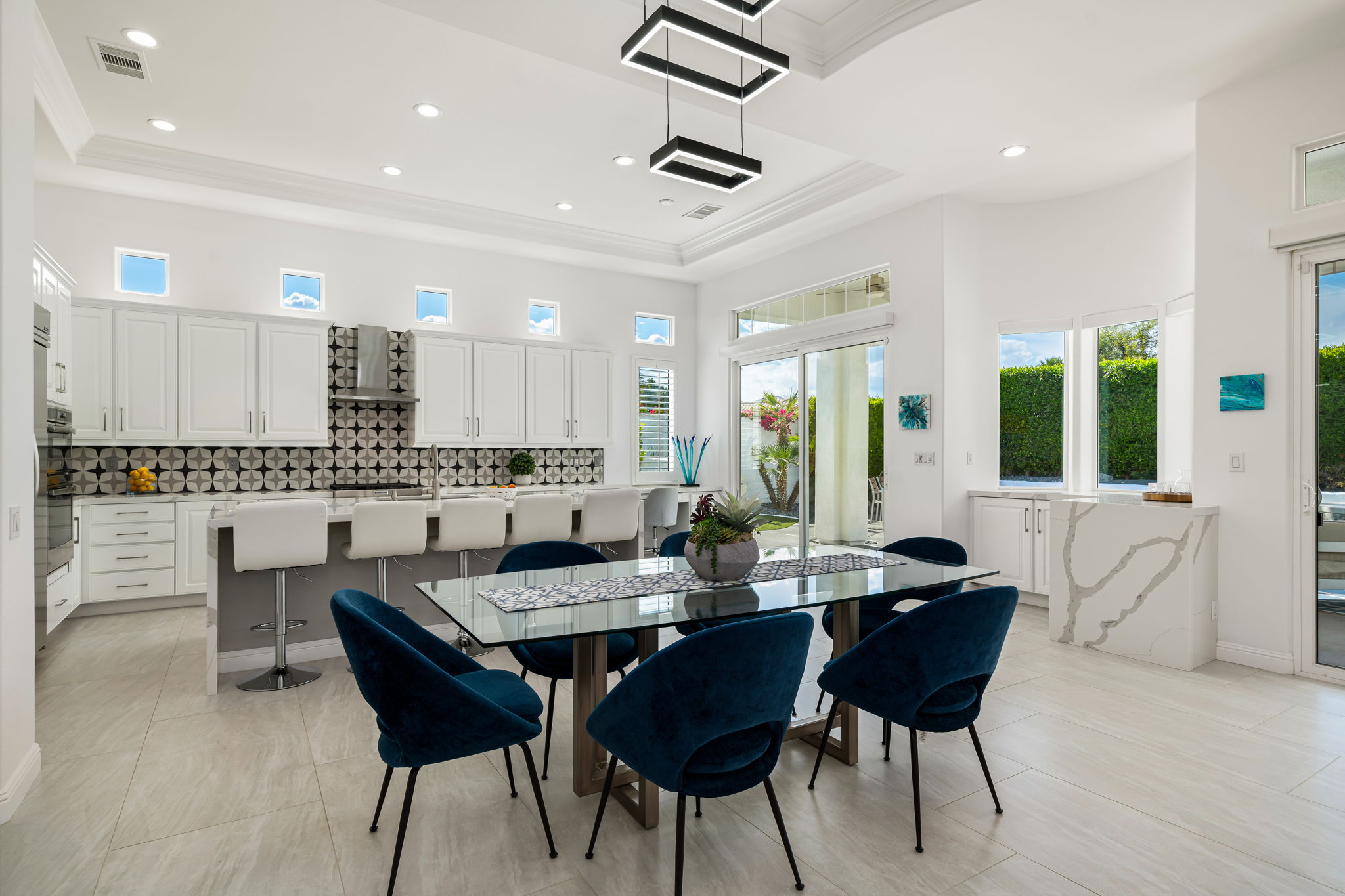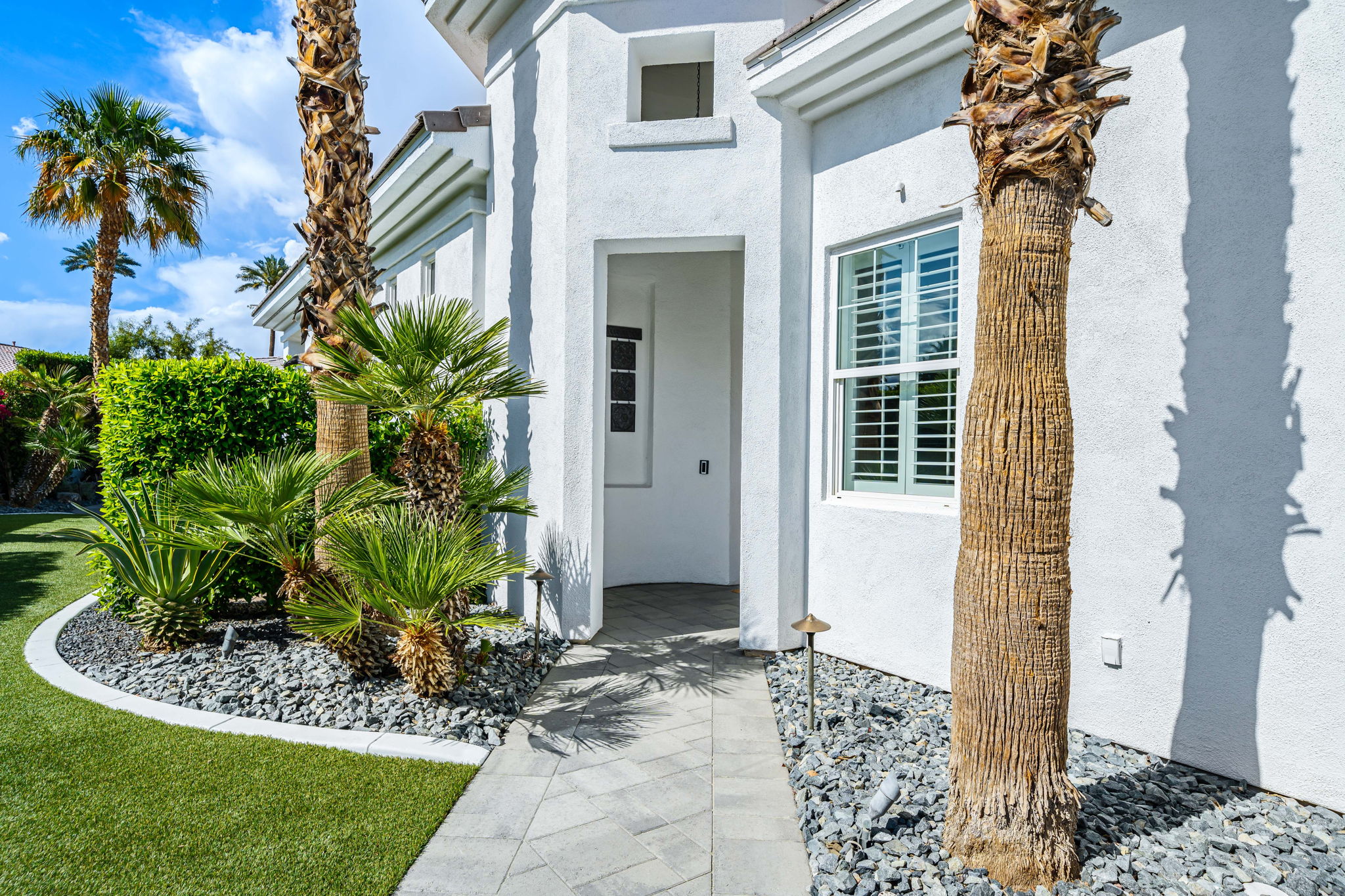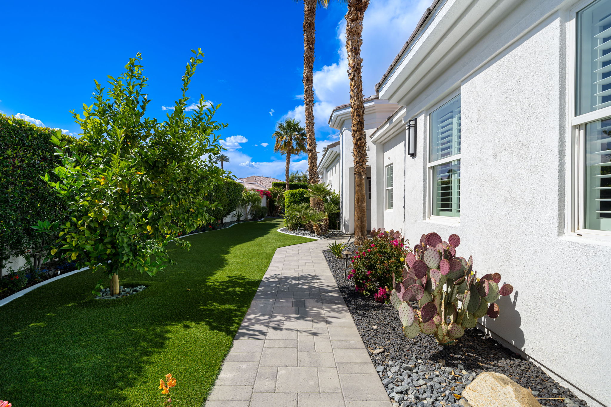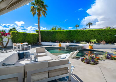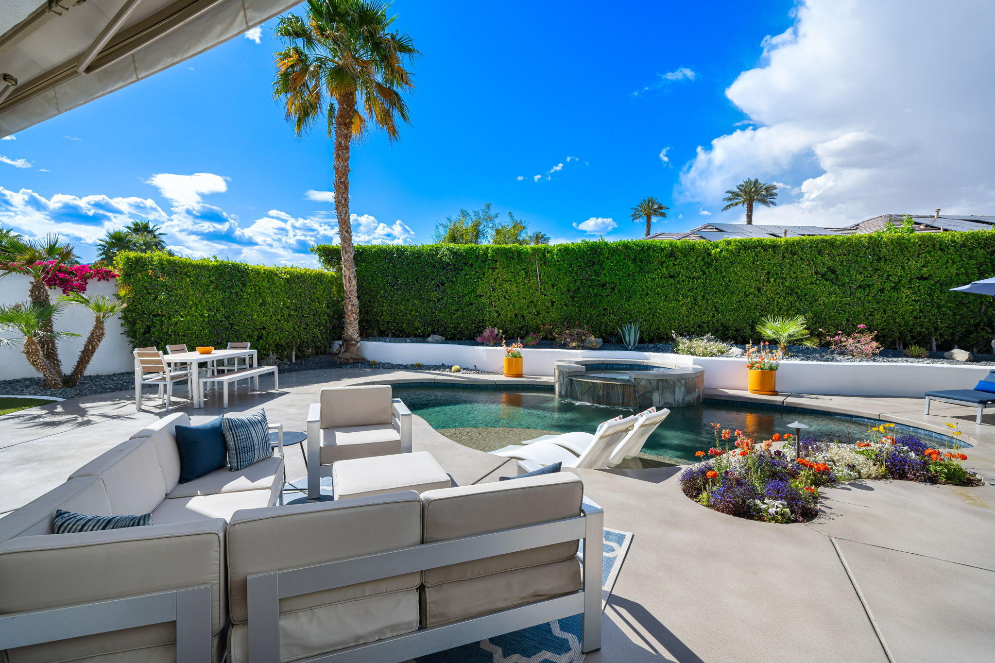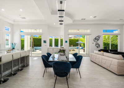 PRICE REDUCED. Private backyard perfect for our 4 legged friends, this house that delivers on all counts! Welcome to 80360 Via Valerosa, an exceptional desert retreat located in the prestigious Mountain View Country Club in La Quinta. This beautifully fully remodeled home combines timeless elegance with modern sophistication and offers the ultimate in indoor-outdoor desert living. Situated on an oversized 12,197 sq ft lot, this 3-bedroom, 4-bathroom residence features the highly sought-after expanded Camina floor plan of 2,634 sq ft of luxurious living space. Every corner of this home has been meticulously updated with premium finishes and designer touches that make it truly move-in ready. Step through the private gated courtyard into a bright and airy interior that blends contemporary design with comfort. The open-concept great room features soaring ceilings, a modern tile fireplace, and panoramic sliding glass doors that frame stunning views and invite natural light. The remodeled kitchen is a chef’s dream, complete with quartz countertops, custom cabinetry, stainless steel appliances, and a spacious island ideal for entertaining. Each of the three bedrooms is en suite, offering privacy and elegance, with remodeled bathrooms, walk-in showers, and custom tile work. The primary suite is a tranquil sanctuary with direct private patio access, dual vanities, a soaking tub, and a generous walk-in closet. Step outside into your own resort-style backyard oasis featuring a custom pebble-tec pool and spa, multiple covered seating areas and a cozy fire pit, all surrounded by beautifully landscaped grounds. Whether you’re hosting guests or enjoying a quiet evening under the stars, this outdoor space delivers peace, privacy, and beauty. Located within the gates of Mountain View Country Club, residents enjoy access to a wealth of amenities including an 18-hole Arnold Palmer Signature golf course, a state-of-the-art fitness center, tennis and pickleball courts, a luxurious clubhouse, and an active social calendar. HOA dues include 24-hour guarded security. Additional features include a 3-car garage, energy-efficient systems, and optional turnkey furnishings. Don’t miss this rare opportunity to own a fully renovated, move-in ready luxury home in one of La Quinta’s most desirable communities. Contact me today to schedule your private tour, this is the desert lifestyle you’ve been dreaming of!