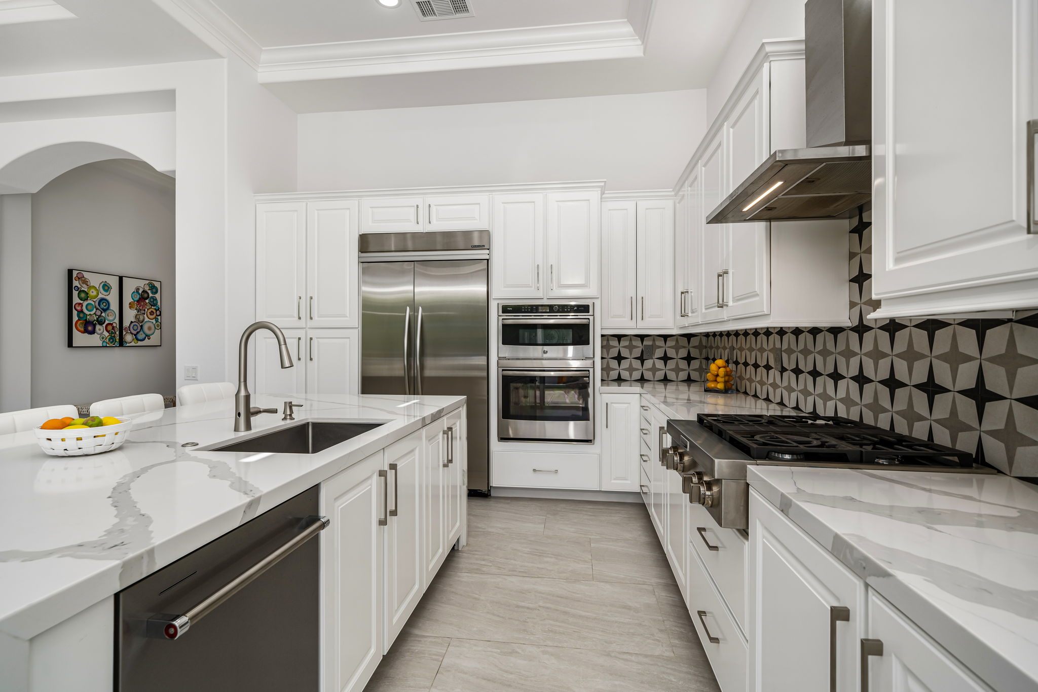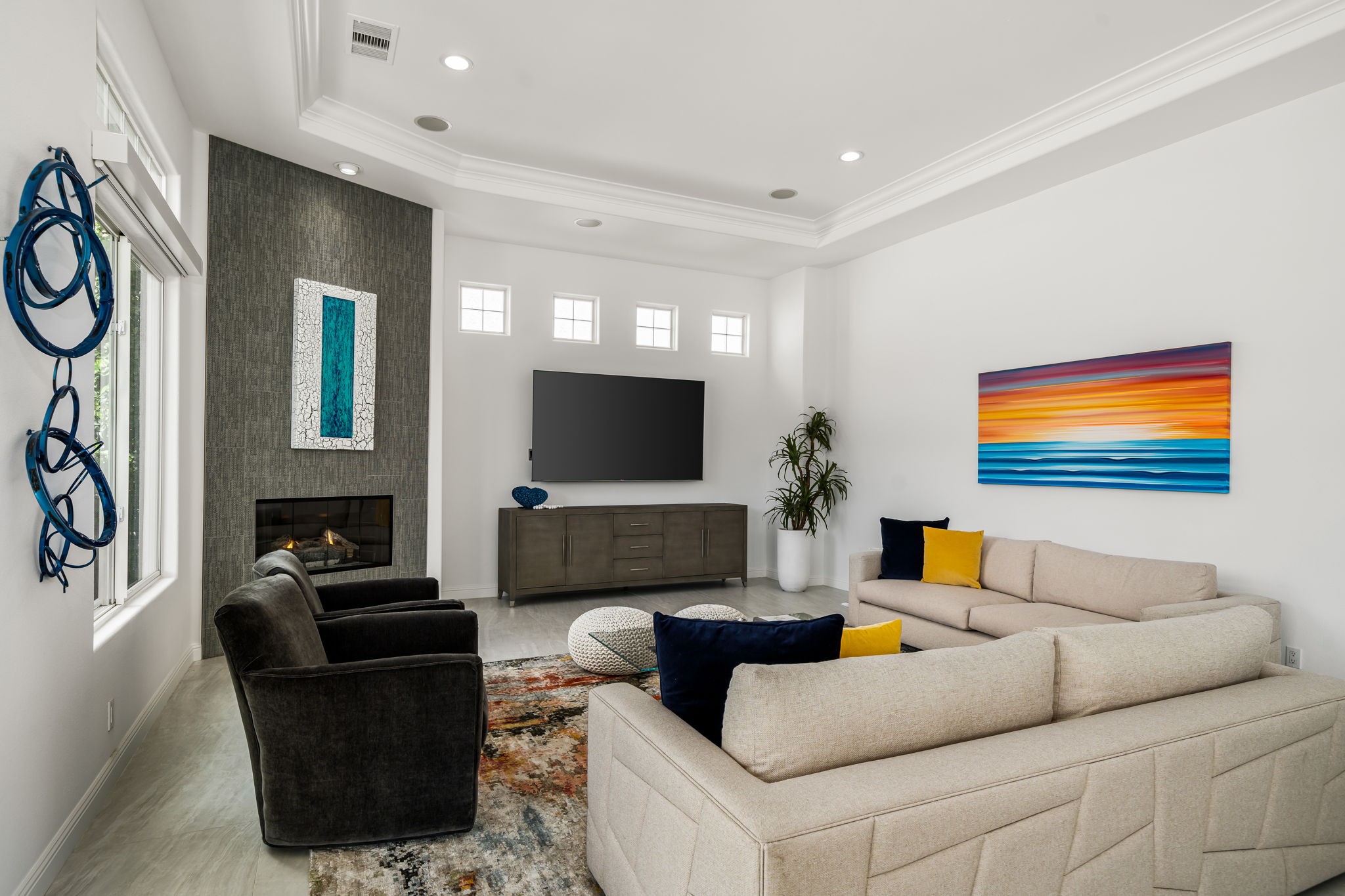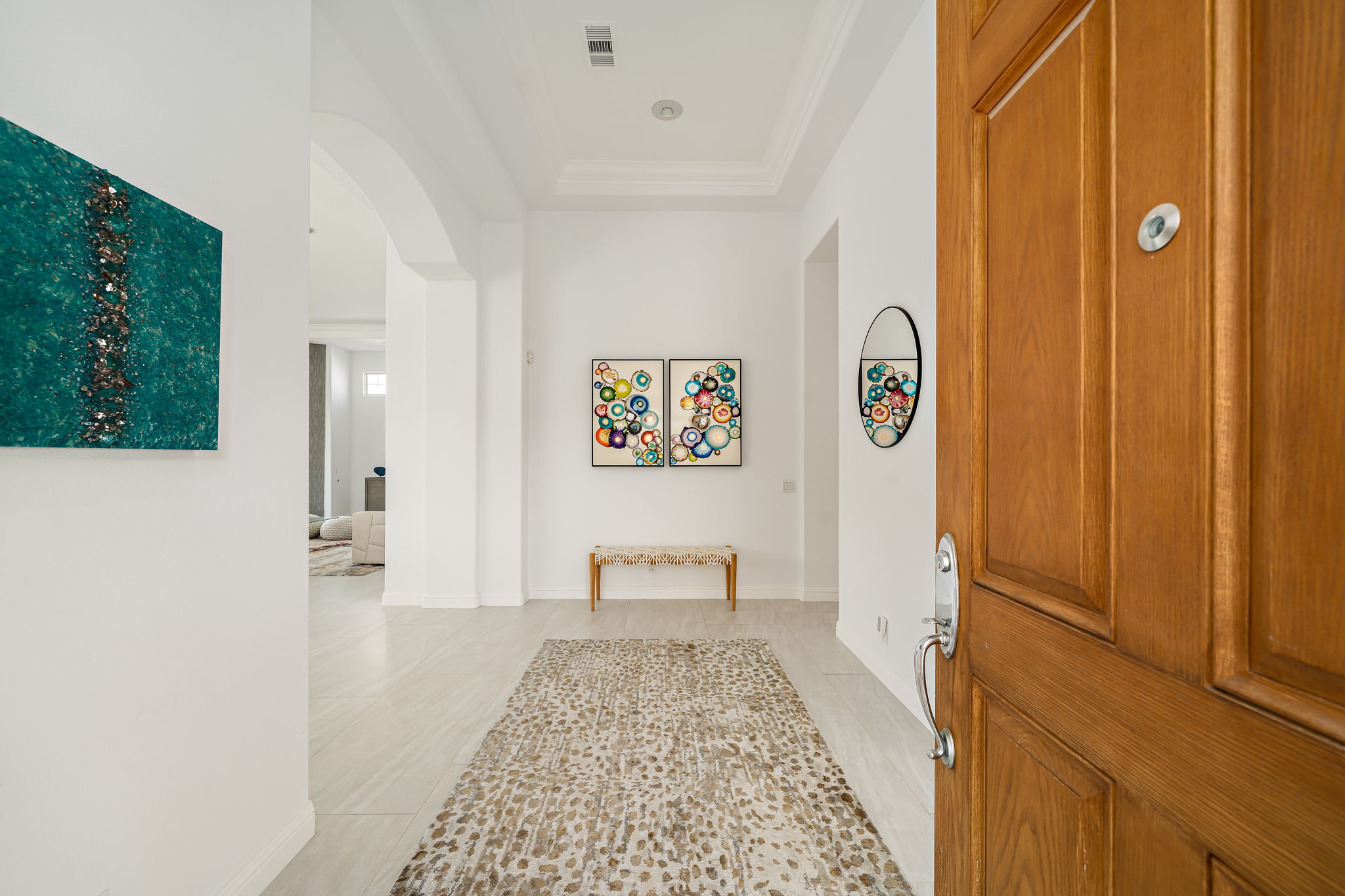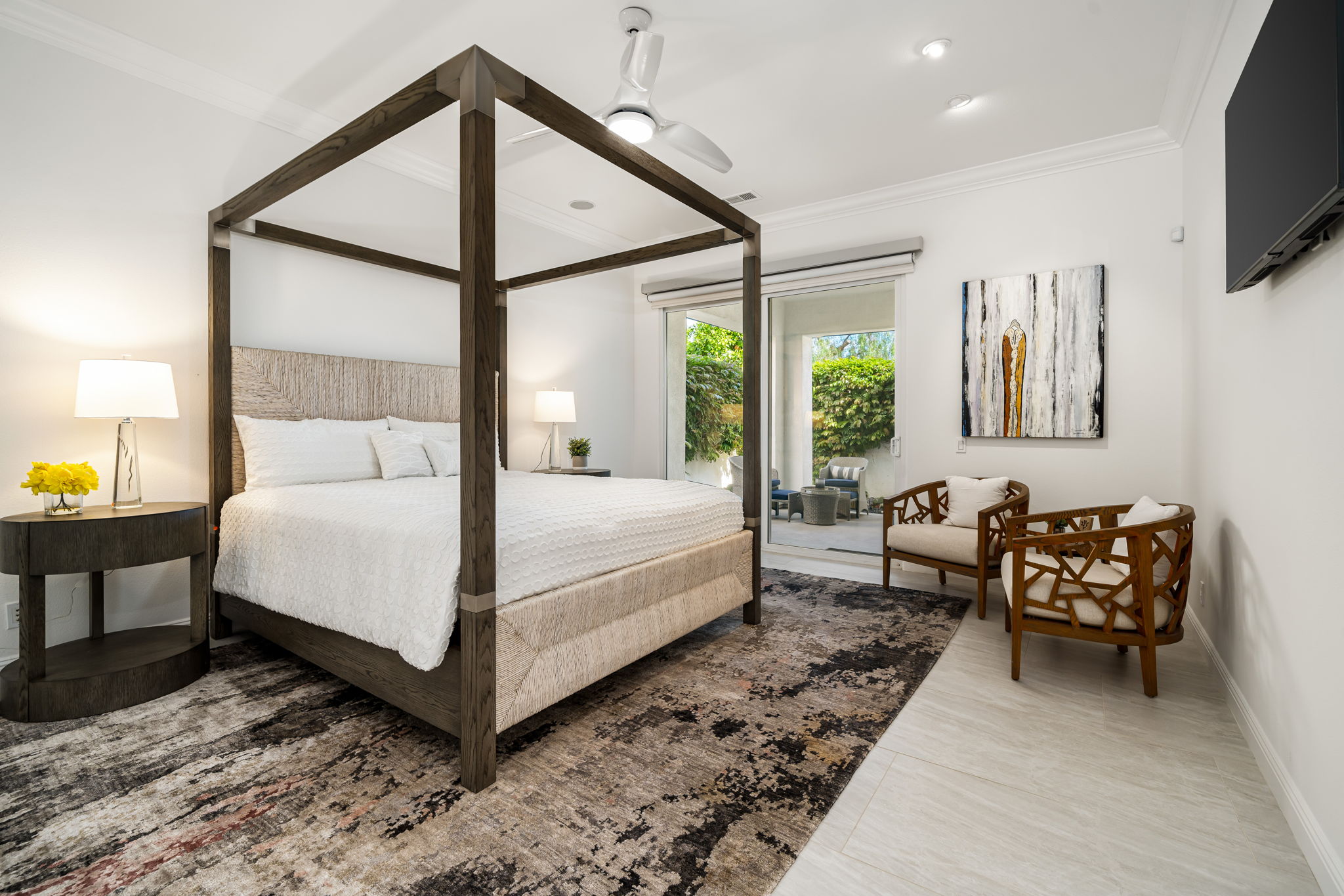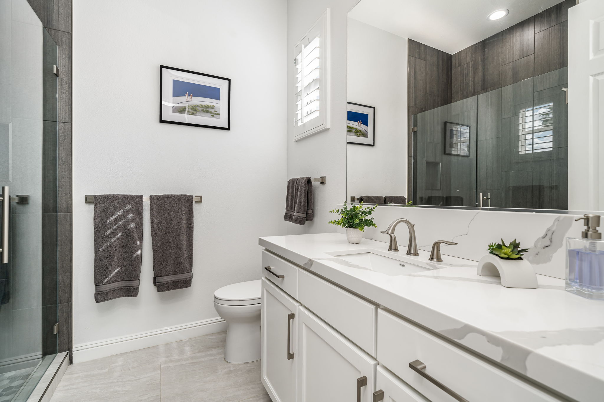 PRICE REDUCED. Private backyard perfect for our 4 legged friends, this house that delivers on all counts! Welcome to 80360 Via Valerosa, an exceptional desert retreat located in the prestigious Mountain View Country Club in La Quinta. This beautifully fully remodeled home combines timeless elegance with modern sophistication and offers the ultimate in indoor-outdoor desert living. Situated on an oversized 12,197 sq ft lot, this 3-bedroom, 4-bathroom residence features the highly sought-after expanded Camina floor plan of 2,634 sq ft of luxurious living space. Every corner of this home has been meticulously updated with premium finishes and designer touches that make it truly move-in ready. Step through the private gated courtyard into a bright and airy interior that blends contemporary design with comfort. The open-concept great room features soaring ceilings, a modern tile fireplace, and panoramic sliding glass doors that frame stunning views and invite natural light. The remodeled kitchen is a chef’s dream, complete with quartz countertops, custom cabinetry, stainless steel appliances, and a spacious island ideal for entertaining. Each of the three bedrooms is en suite, offering privacy and elegance, with remodeled bathrooms, walk-in showers, and custom tile work. The primary suite is a tranquil sanctuary with direct private patio access, dual vanities, a soaking tub, and a generous walk-in closet. Step outside into your own resort-style backyard oasis featuring a custom pebble-tec pool and spa, multiple covered seating areas and a cozy fire pit, all surrounded by beautifully landscaped grounds. Whether you’re hosting guests or enjoying a quiet evening under the stars, this outdoor space delivers peace, privacy, and beauty. Located within the gates of Mountain View Country Club, residents enjoy access to a wealth of amenities including an 18-hole Arnold Palmer Signature golf course, a state-of-the-art fitness center, tennis and pickleball courts, a luxurious clubhouse, and an active social calendar. HOA dues include 24-hour guarded security. Additional features include a 3-car garage, energy-efficient systems, and optional turnkey furnishings. Don’t miss this rare opportunity to own a fully renovated, move-in ready luxury home in one of La Quinta’s most desirable communities. Contact me today to schedule your private tour, this is the desert lifestyle you’ve been dreaming of!